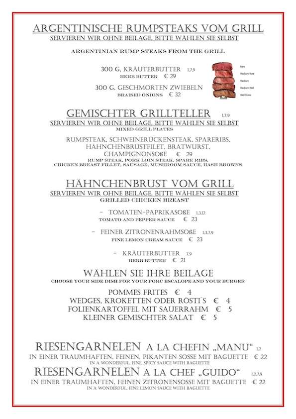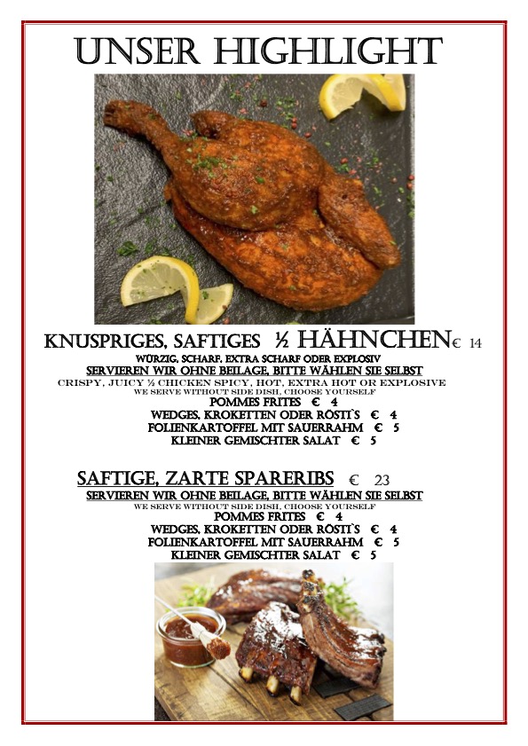 Neue Variationen und Saisonale Gerichte gehöhren dazu.