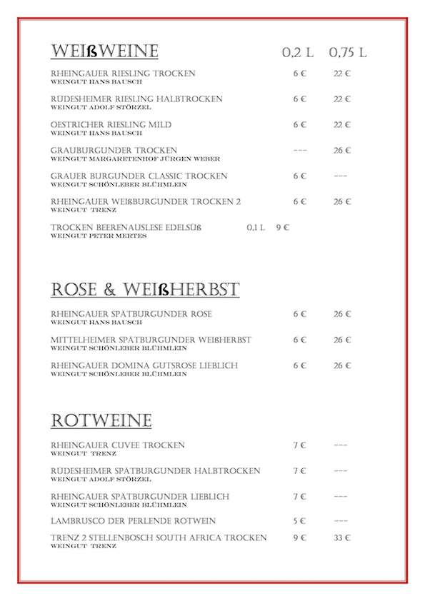 Die Speisekarte wird aktuell überarbeitet