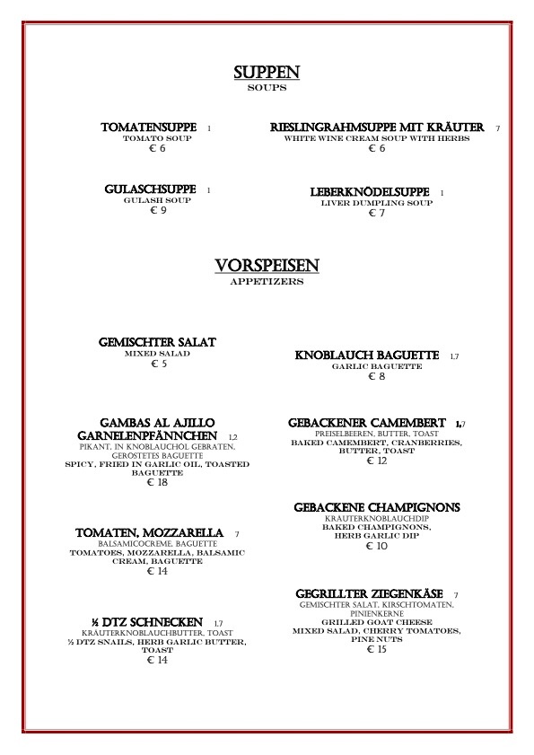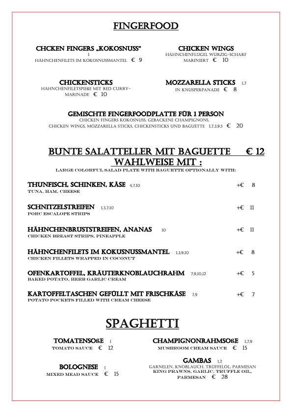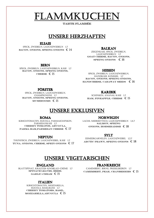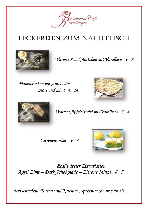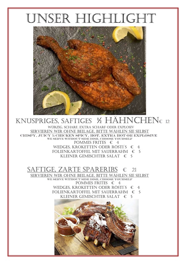Neue Variationen und Saisonale Gerichte gehöhren dazu.